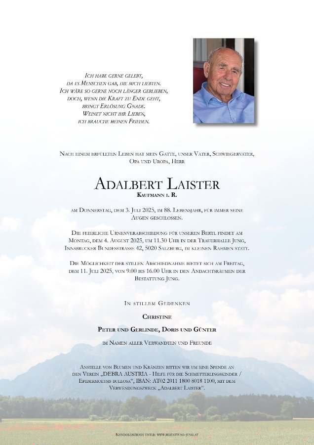 Lieber Bertl, machs gut, wo immer du jetzt auch bist!