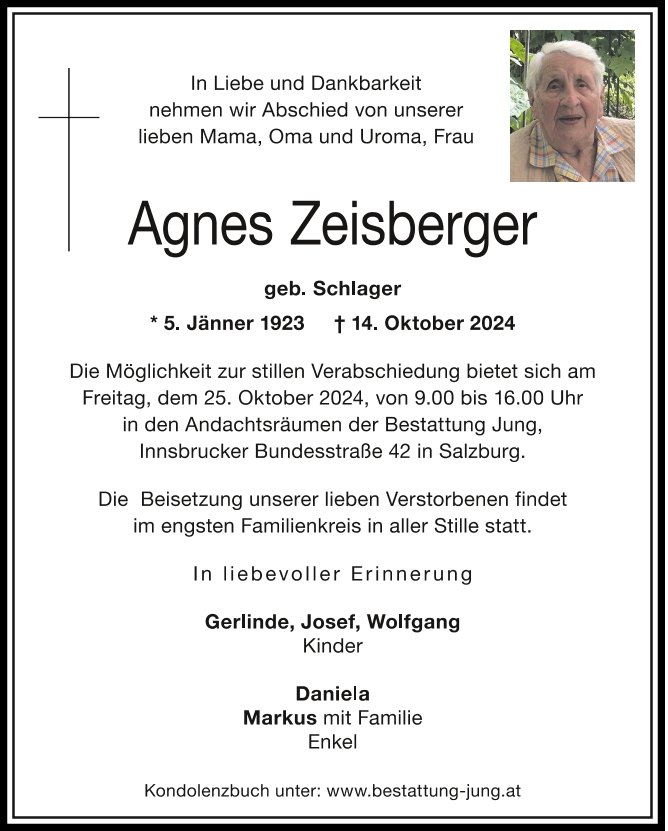 geboren am 5. Januar 1923 in Lamprechtshausen gestorben am 14. Oktober 2024 in Salzburg