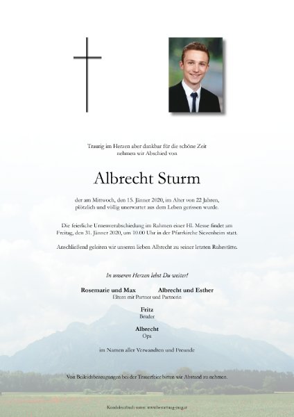 Wir wissen, dass viele Menschen Albrecht vermissen werden und sind dankbar, dass wir Ihn erleben durften.