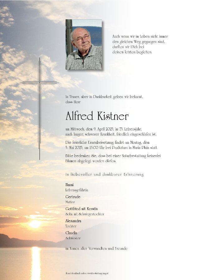 Lieber Alfred du warst ein verlässlicher Kollege und Freund wir haben viele schöne Stunden in der CDK verbracht. Ich werde dich stets in guter Erinnerung behalten. Mein Mitgefühl gilt deiner Familie.