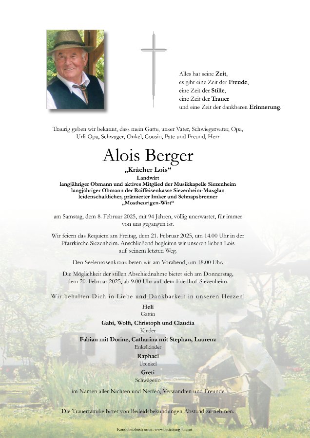 geboren am 28. Januar 1931 in Siezenheim gestorben am 8. Februar 2025 in St. Veit im Pongau