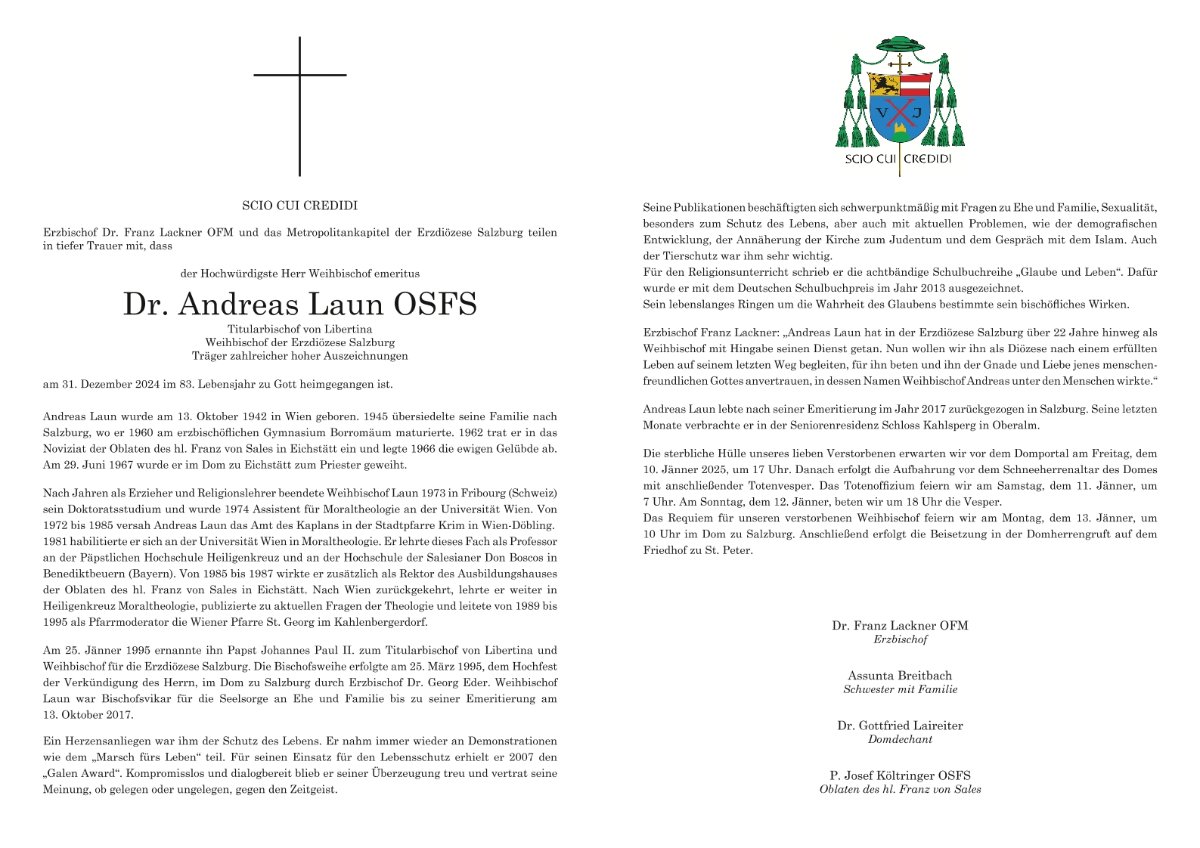 Weihbischof em. Dr. Andreas Laun OSFS