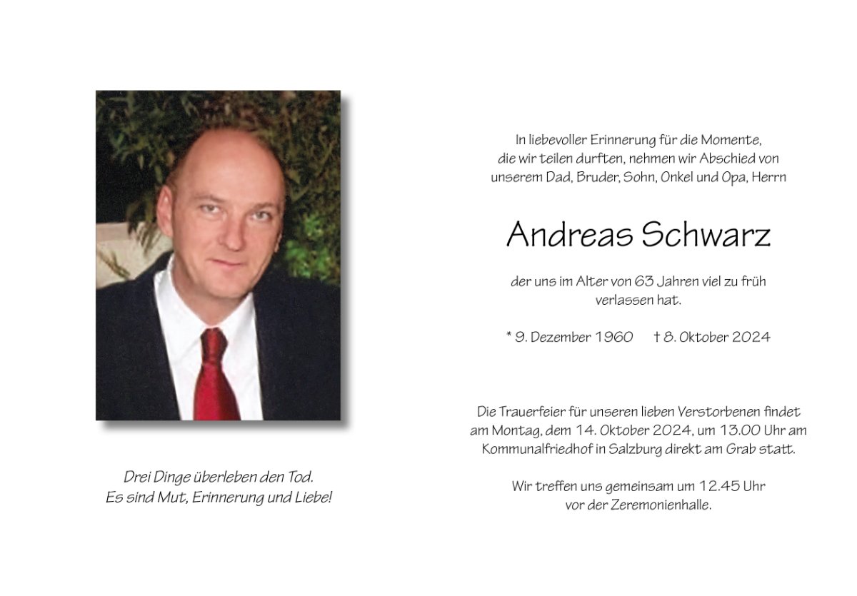 geboren am 9. Dezember 1960 in Salzburg gestorben am 8. Oktober 2024 in Salzburg