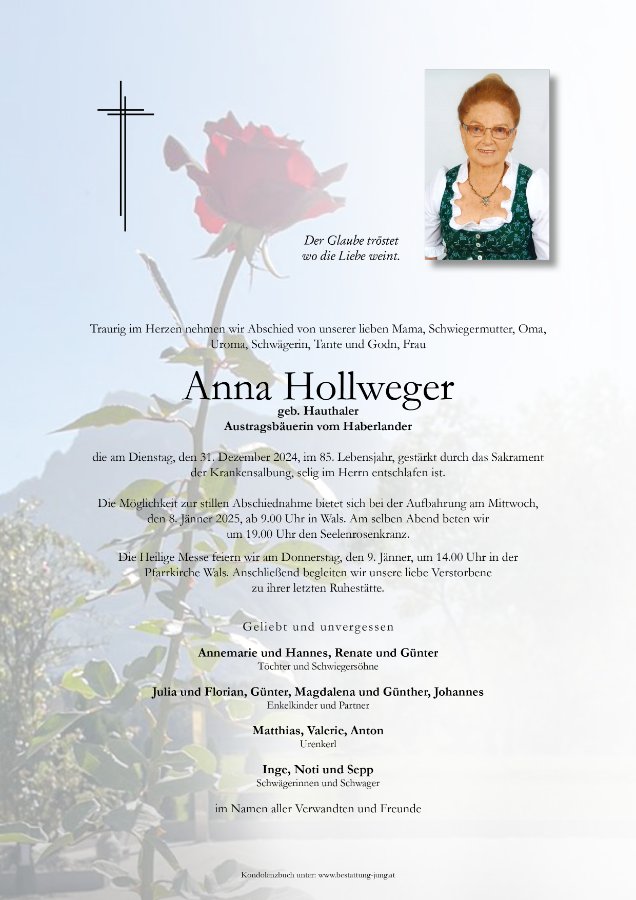 Geschätzte Trauerfamilie!