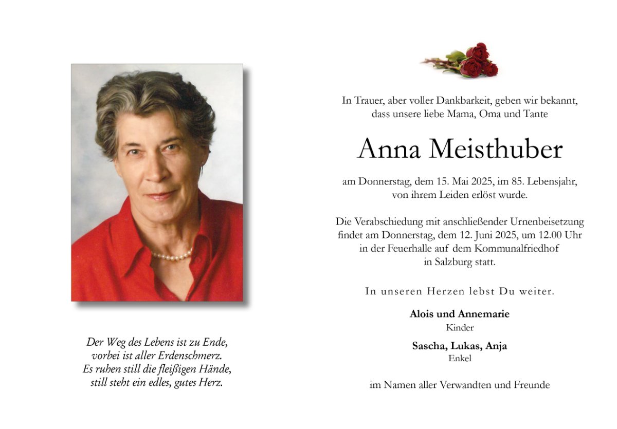 geboren am 30. Juni 1940 in Straßwalchen gestorben am 15. Mai 2025 in Salzburg