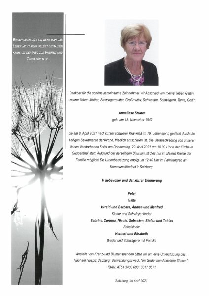 geboren am 18. November 1942 gestorben am 8. April 2021 in Salzburg