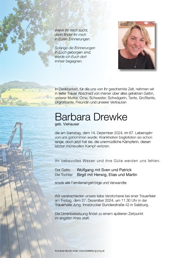 Mein tiefes Mitgefühl an die Trauerfamilie über ihren Verlust von Barbara oder Babsi wie ich sie genannt habe damals !! Viel Kraft an alle !