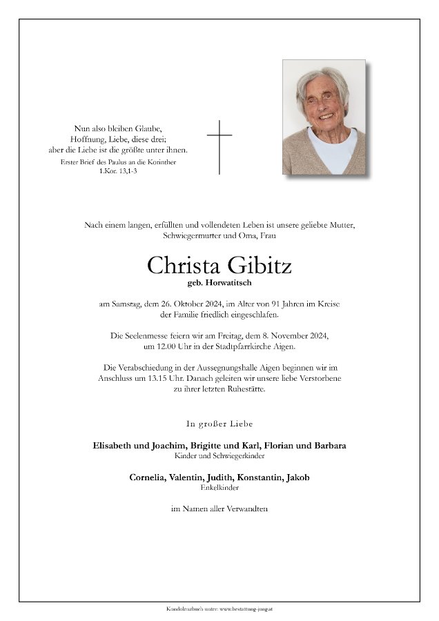 * Trauerfeier, Aussegnungshalle Friedhof Aigen
