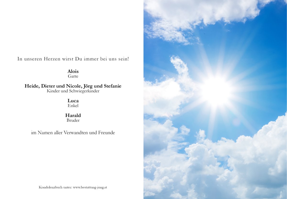 Sprechen Sie im Kondolenzbuch den Hinterbliebenen Ihr Beileid aus und teilen Sie persönliche Gedanken und Erinnerungen mit anderen.