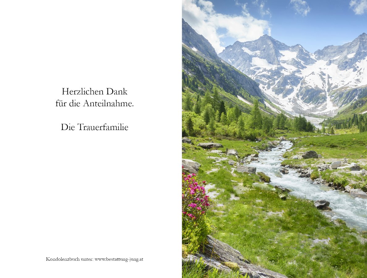 Was wir bergen in den Särgendas ist nur der Erde Kleidwas wir lieben ist gebliebenbleibt uns auch in Ewigkeit.Allen die trauern unser innigstes Beileid