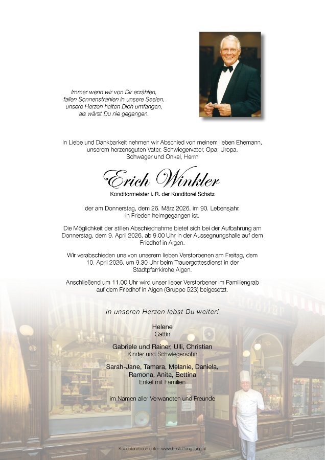 Wir sind sehr traurig, dass Erich nicht mehr lebt. Er wird uns sehr fehlen, egal ob in der Konditorei oder im Lehener Interspar.Wir fühlen mit euch und wünschen euch viel Kraft!