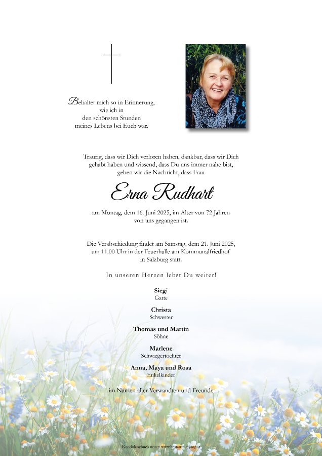 Es ist unfassbar traurig, dass die Seele unseres Hauses uns für immer verlassen musste. Wir werden dich sehr vermissen, liebe Erni. Danke für die schöne Zeit, die ich als Nachbarin mit dir verbringen durfte.