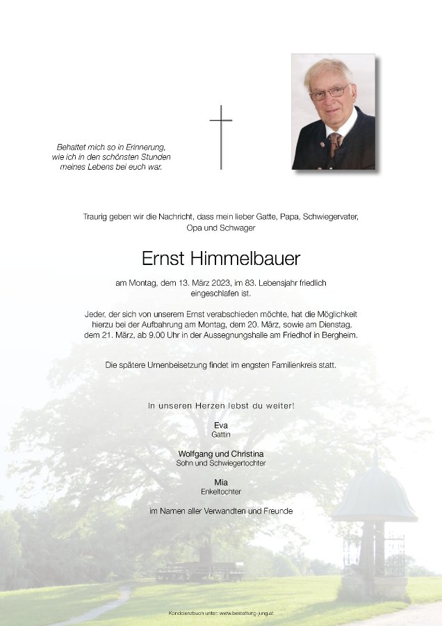 Möge dieses Licht dich auf deiner Reise begleiten. Wir werden Ernst als fröhlichen, positiven Menschen in Erinnerung behalten. Danke für deine Freundschaft, und die Erinnerung an viele schöne