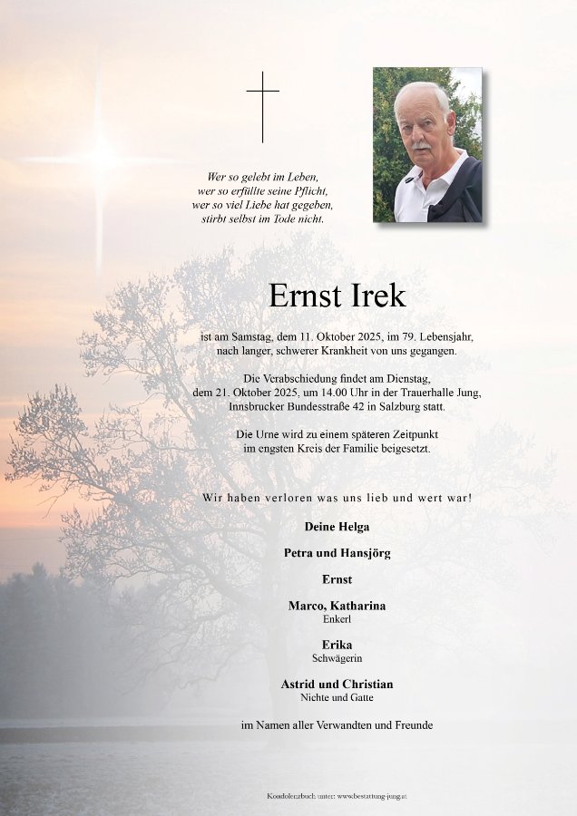 leider jetzt und daher nachträglich mein aufrichtiges und herzliches Beileid zum Ableben von Ernst!