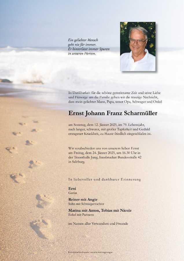 Wir sind dankbar über die gemeinsame Zeit mit Ernst unseren herzlichen, fröhlichen, hilfsbereiten und so sonnigen Nachbarn.