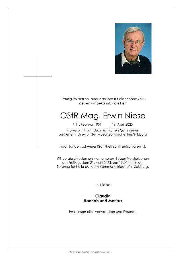 Lieber Erwin !Wir danken Dir, dass wir dich kennenlernen durften.Jede Begegnung hat uns reicher gemacht.In tiefer Liebe und Verbundenheit fühlen wir mit Claudia, Hannah und Markus.