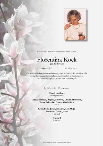 Die Gedanken wandern zu meiner Kindheit- Tina war unsere Nachbarin- ich habe sie sehr geschätzt- habe Sie sehr gut in Erinnerung - und leider sehr lange nicht mehr gesehen. Tina war sicher eine wunderbare Schwester, Mutter, Groß- und Urgroßmutter - Ich wünsche mein herzliches Beileid- und bin in Gedanken bei Ihnen und Tina - Wie die Zeit vergeht!