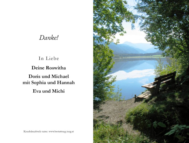 Lieber Franz, Du wirst uns sehr fehlen denn wir hatten immer weil Spass zusammen, in der Schule oder bei der Musik und all den weiteren Treffen. Diese schönen Erinnerungen werden uns helfen diesen traurigen Moment zu überwinden. Roswitha, Dir und den beiden Töchtern Doris und Eva, sowie den Enkelkindern viel Kraft in dieser schweren Zeit wünschen Euch Günther und Noi.