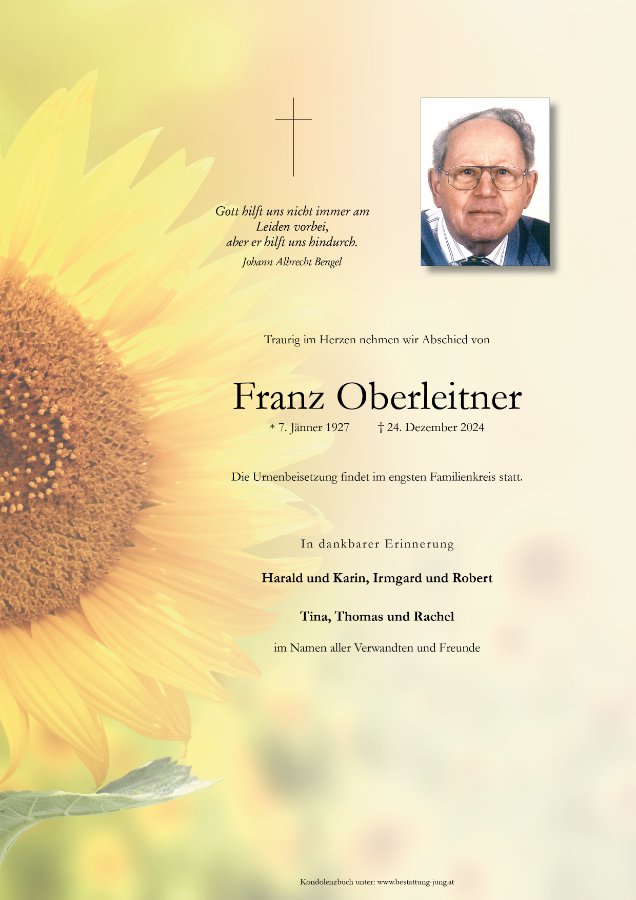 Möge die Erinnerung an Franz in unseren Herzen weiterleben und uns trösten. Es ist schwer, einen solch einzigartigen Menschen zu verlieren, aber ich bin sicher, dass sein Geist uns weiterhin begleiten wird.