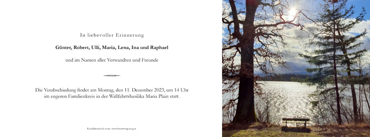 Wir vermissen unendlich, deine Güte, deinen Frohsinn und dein Lachen.