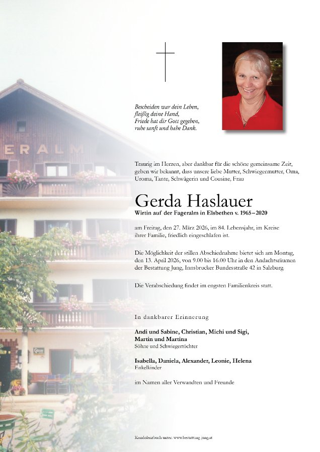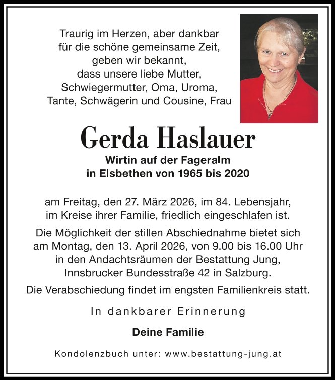 geboren am 22. Mai 1942 in Salzburg gestorben am 27. März 2026 in Elsbethen