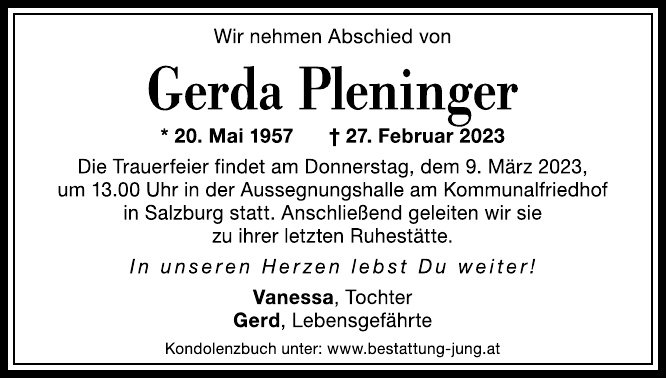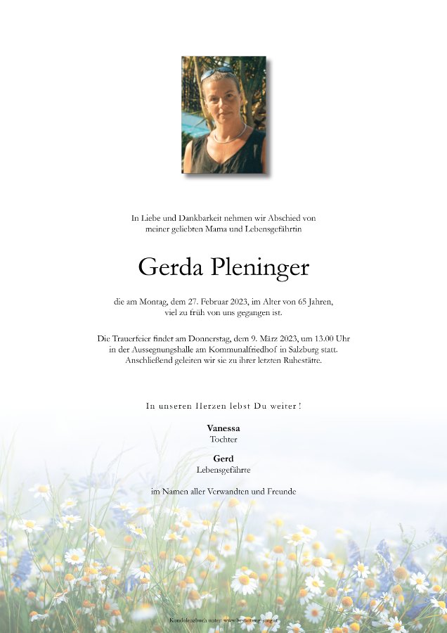 Liebe Frau Pleninger !Mein aufrichtiges Beileid!Ruhe in Frieden…O.Ch.Lechner