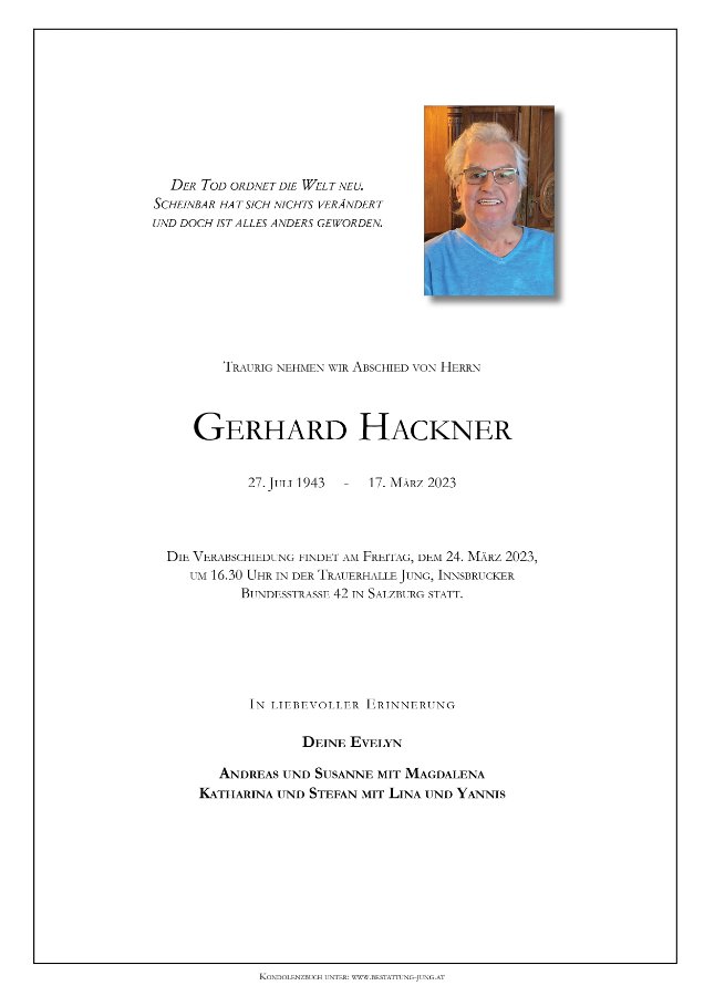 geboren am 27. Juli 1943 in Salzburg gestorben am 17. März 2023 in Salzburg
