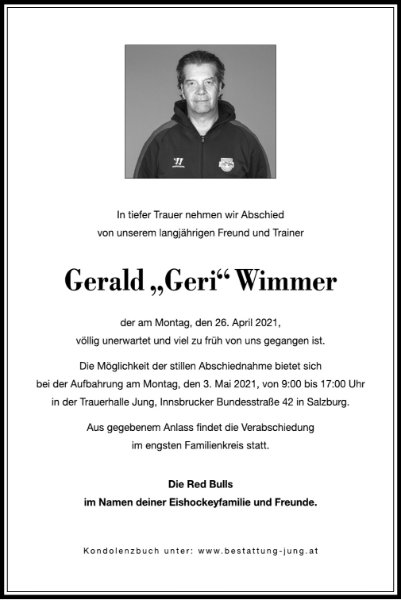 Die Möglichkeit der stillen Abschiednahme bietet sich bei der Aufbahrung am Montag, dem 3. Mai 2021, von 9.00 bis 17.00 Uhr in der Trauerhalle Jung, Innsbrucker Bundesstraße 42 in Salzburg.