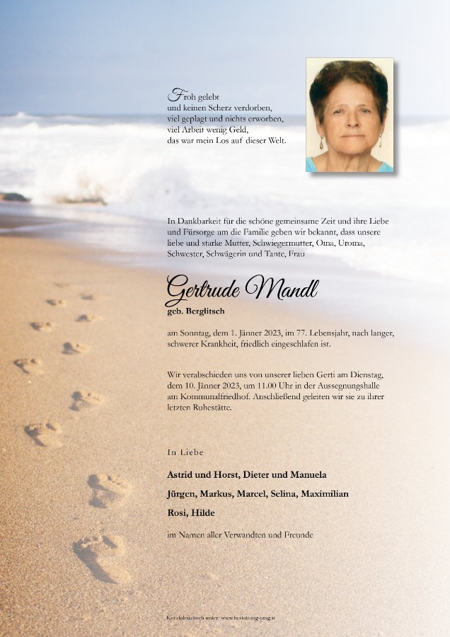 geboren am 8. August 1946 in Eidweg gestorben am 1. Januar 2023 in Salzburg