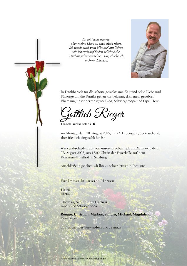 Seine Liebe und Erinnerungen werden für immer in unseren Herzen weiterleben. In dieser Zeit sind wir in Gedanken und Gebeten bei Dir.
