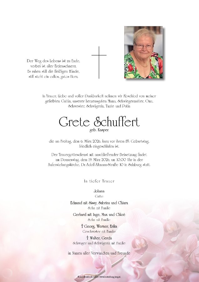 So ein Trauerspruch, der uns sehr gefallen hat. Dennoch ist es sicher schwer, die Hand eurer geliebten Grete loszulassen. Wir wollen in Gedanken bei euch sein und wünschen viel Kraft für die kommende Zeit.