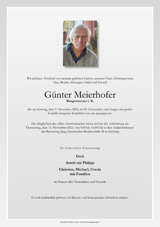 Liebe Greti, dir und deiner Familie mein aufrichtiges Beileid zum Ableben von Günter.