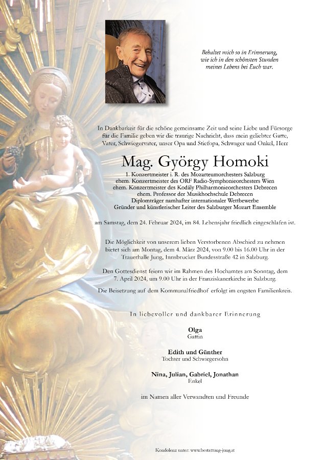 Ich möchte euch mein herzlichstes Beileid zum Ableben eures lieben Familienmitgliedes ausdrücken, besonders auch deiner Mutter, liebe Edith. Ich wünsche euch allen viel Kraft und viele Zeichen des Trostes und des Segens.