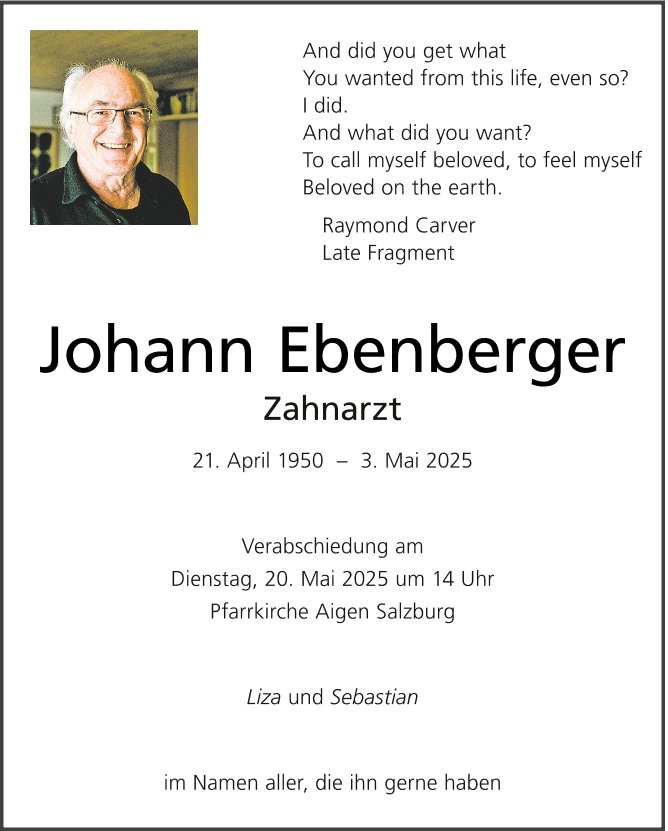 Was war er für ein wunderbarer Mensch, der Hans. Und den konnte er auch unter dem Zahnarztkittel nicht verbergen. Ich bin so dankbar, dass ich deine Patientin sein durfte. Solch edlen Seelen geht es bestimmt gut im Himmel!