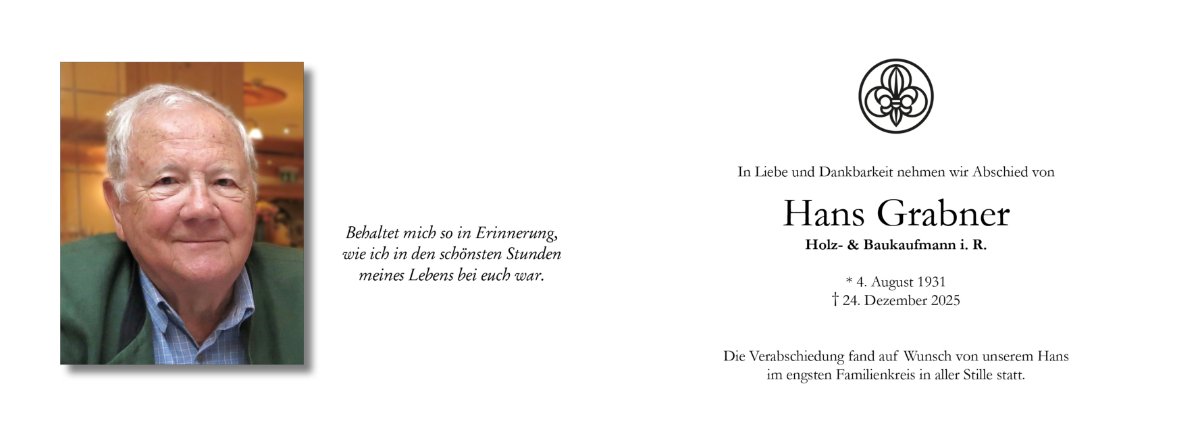 Unser Ehrenmitglied Hans Grabner hat seine Aufgabe erfüllt und istnach Hause gegangen.Lieber Hans, in unserer Erinnerung lebst Du weiter..... Ein letztes Gut Pfad Deine Georgs-Gilde Salzburg