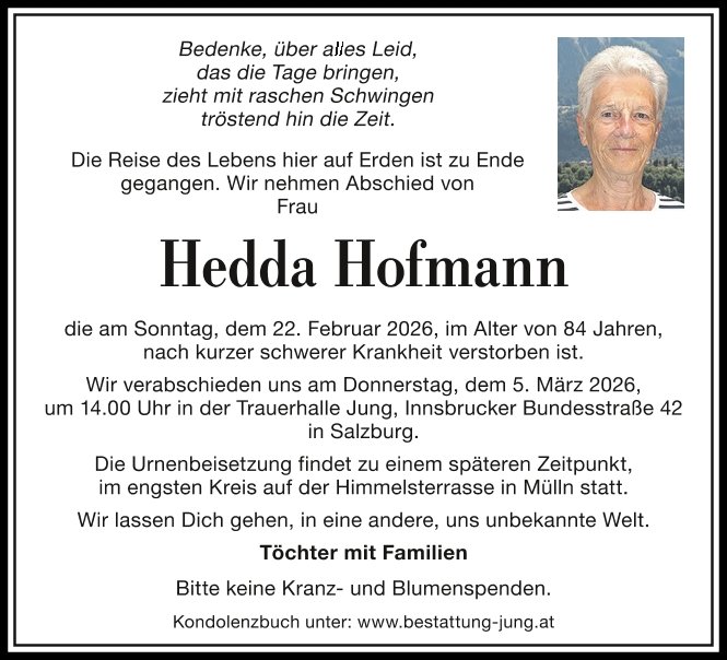 Die Erinnerung an eure liebe Hedda kann euch aber niemand nehmen.