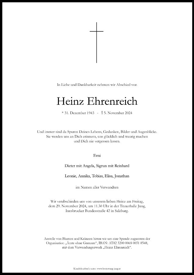 Heinz hat meine Kindheit und Jugend wesentlich mitgeprägt. Unvergesslich die schöne Zeit bei Schitouren auf den Kloben bei Schiwochen in Wagrain, die gemeinsamen Urlaube und die Zeit die ich bei euch verbringen durfte.