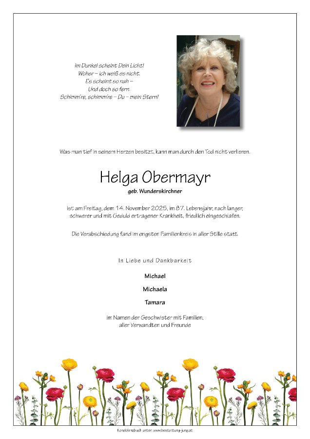 Es ist schon Jahrzehnte her, dass Du, liebe Michi, als Schulkollegin meiner Tochter beinahe wie ein Familienmitglied bei uns ein- und ausgegangen bist. Daher ist es mir ein aufrichtiges Bedürfnis, Dir und Deiner Familie mein herzliches Beileid auszudrücken. Franz