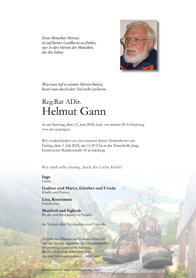 Du wirst mir stets in Erinnerung bleiben und ich werde gern an die zahlreichen Gespräche über und von Bergtouren/ Skitouren mit Dir zurückdenken.