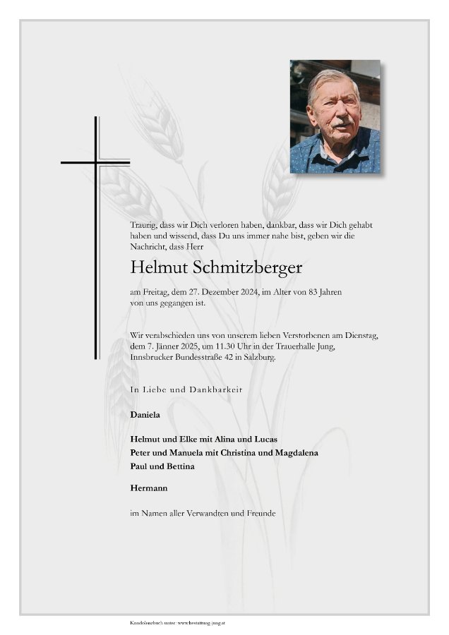 Lieber Helmut! Viele Ferienwochen durfte ich bei dir und deiner Familie in Salzburg verbringen.Es war für mich immer eine sehr schöne Zeit..ich danke dir für diese Erinnerungen...Letzte Grüße EVA