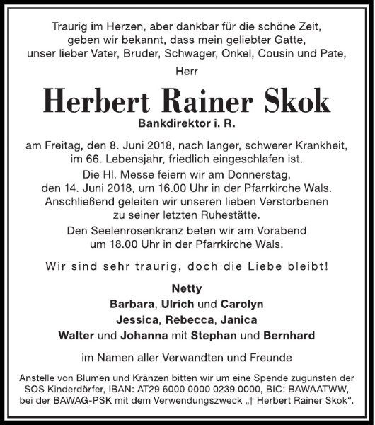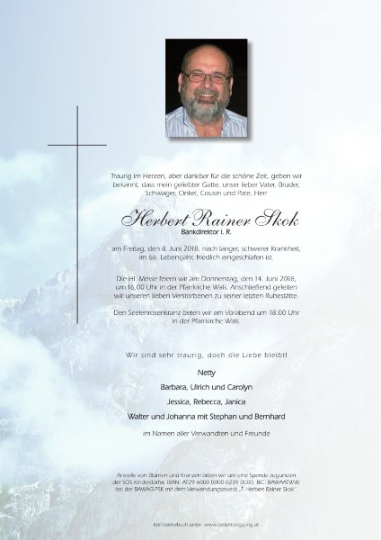 Unser lieber Papa ist am 8. Juni von uns gegangen. Wir können es noch immer nicht fassen, und doch sind wir dankbar, dass er durch unseren Himmelvater von seinen Leiden erlöst wurde. Wir vermissen ihn schrecklich und es wird kein einziger Tag unseres Lebens vergehen, an dem wir nicht an ihn denken und uns warm ums Herz wird wenn wir uns an seinen Großmut, seine Güte und Liebenswürdigkeit erinnern. Er war Freund, Vater, Gefährte und Begleiter für so viele seiner Mitmenschen und wird für immer in unseren Herzen wohnen.