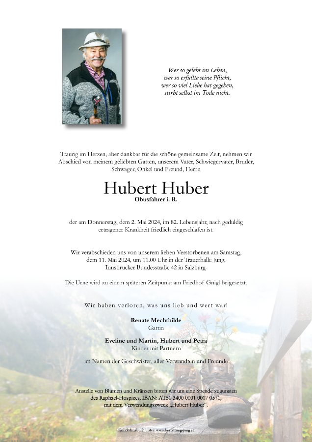 Es ist schwer, die richtigen Worte zu finden, um sich von einem geliebten Menschen zu verabschieden, der so viel bedeutet hat. Lieber Papa, dein Leben war ein Geschenk für uns alle. Du warst ein Fels in der Brandung, ein Vorbild, ein Freund und immer für uns da. Dein Humor, dein Lachen und deine Liebe werden für immer in unseren Herzen weiterleben.