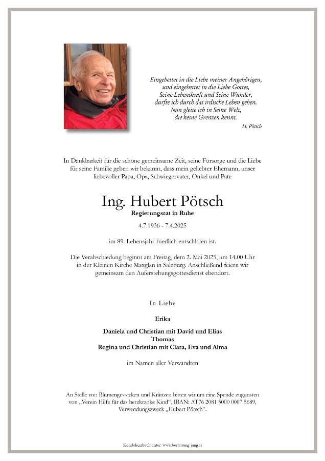 In tiefer Trauer gedenke ich meinem lieben Studien- und Heimkameraden Hubert. Er war immer ein sehr lieber und immer positiver und hilfsbereiter Kamerad für mich. Es bleiben die vielen schönen Erinnerungen an die vergangenen Zeiten.