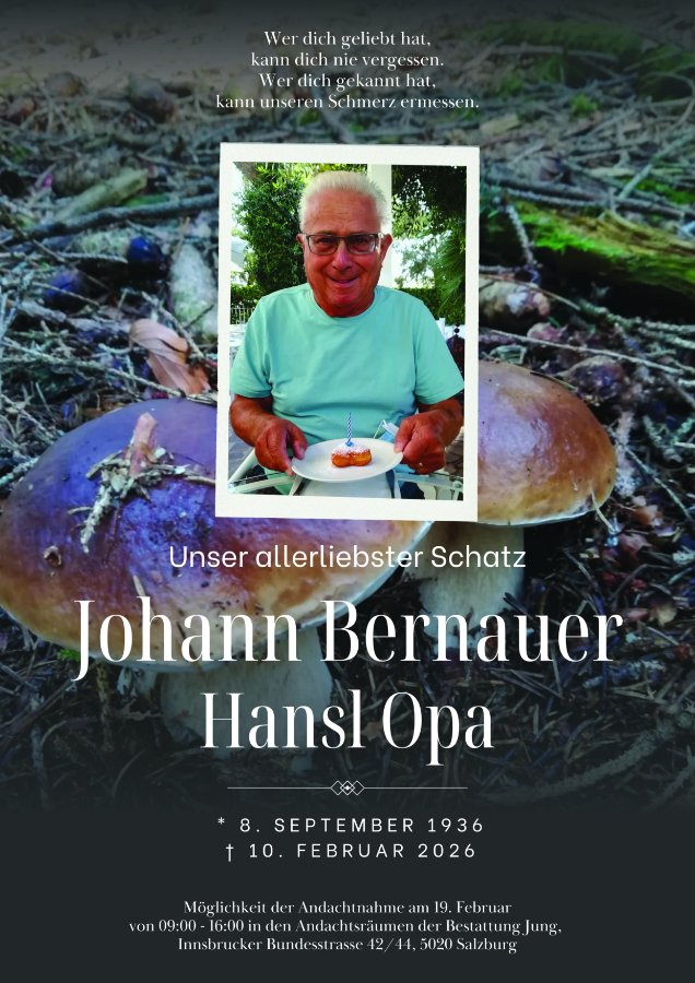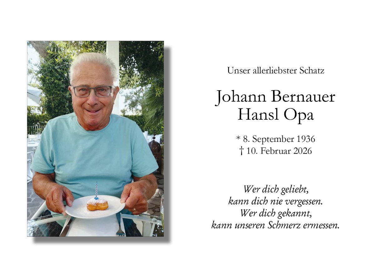 Liebe Familie Bernauer. Ein Aufrichtiges Beileid entbietet Ihnen Gerhard Habersatter. Der Herr schicke unseren lieben Verstorbenen seine Engel entgegen, damit er sicher ankommt in Seinem Land, da wo die Sonne nicht mehr untergeht!
