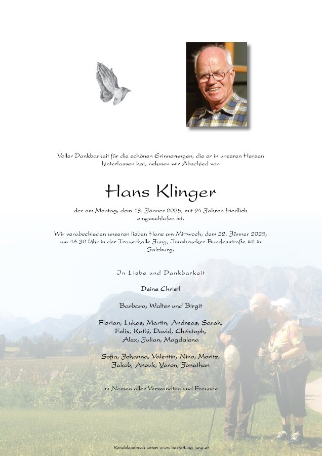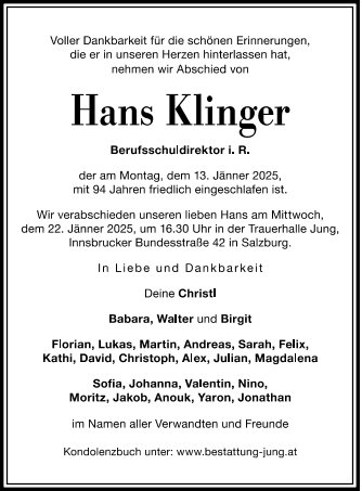 Ihnen meine Anteilnahme am Ableben von Herrn Dir. Klinger.