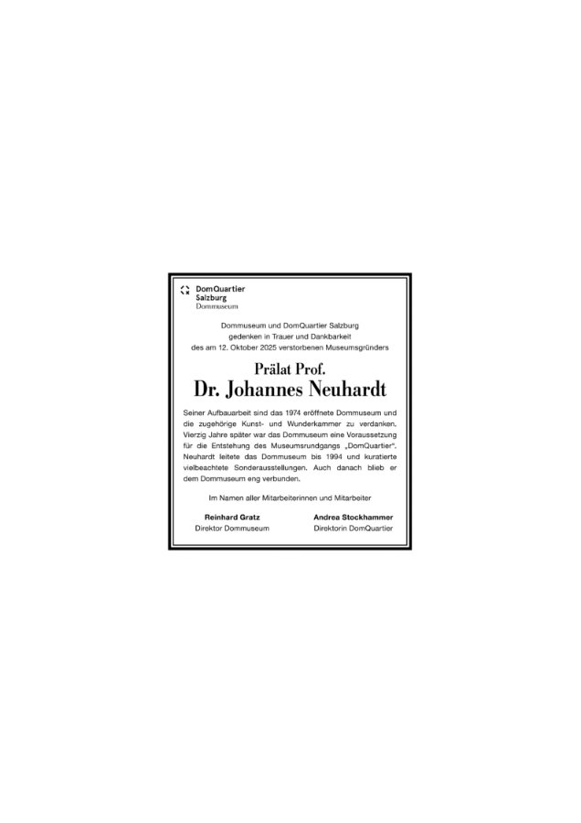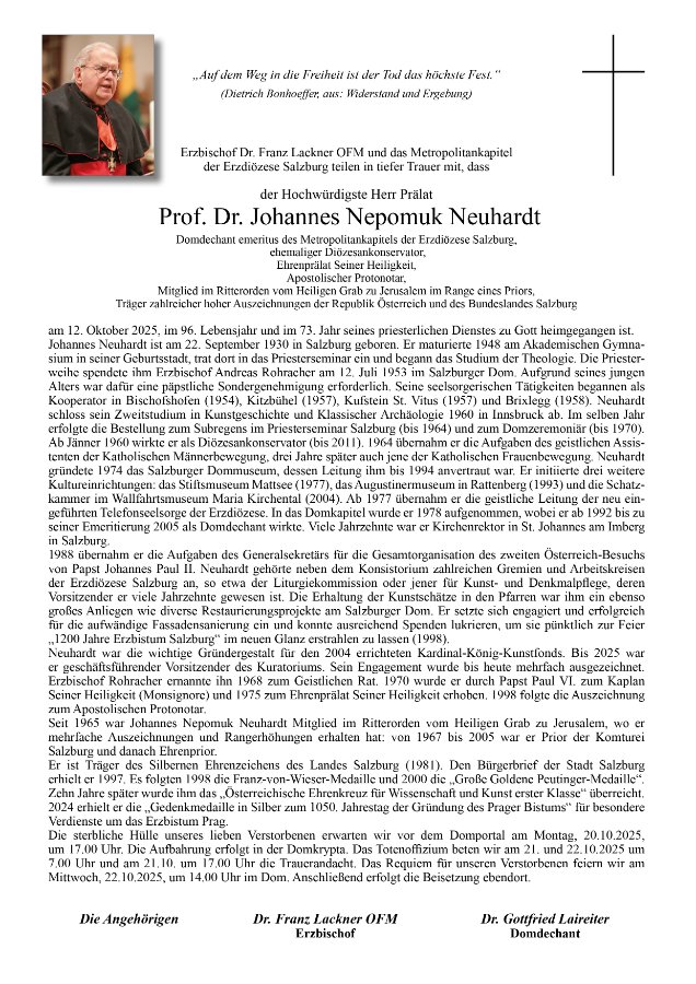 möge Dich der Herr nach Deinem erfüllten Leben für Kirche, Glaube und Kunst aufnehmen in sein ewiges Licht.