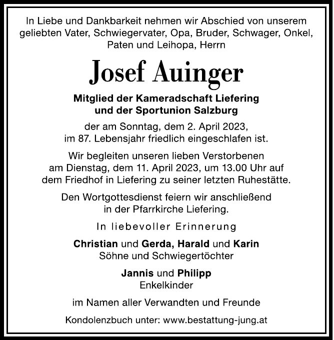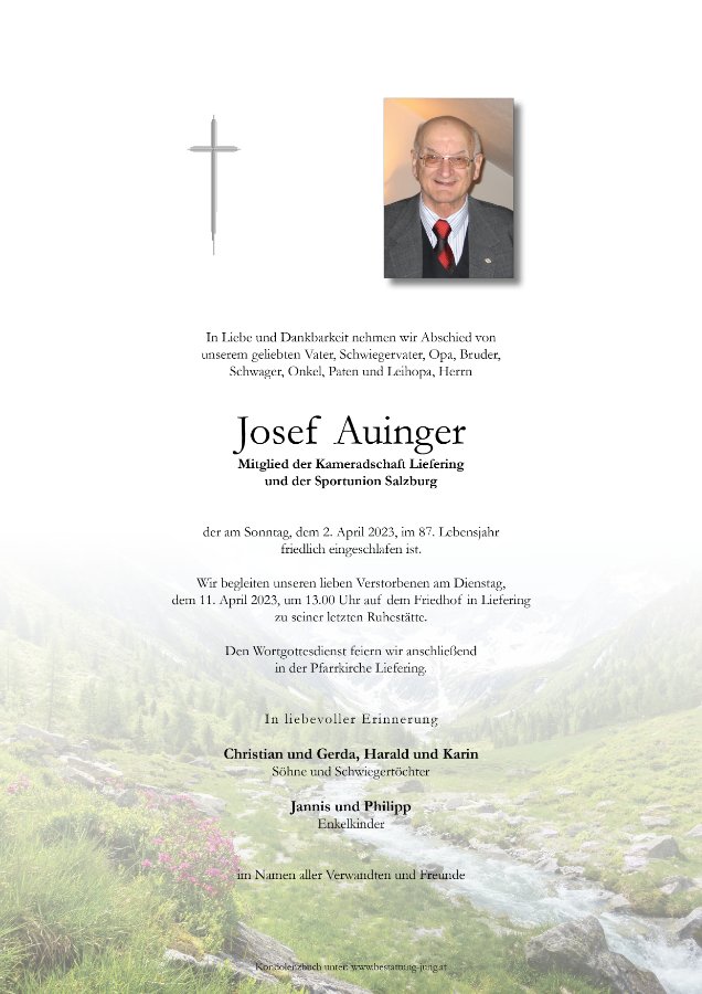 geboren am 16. März 1937 in St. Georgen im Attergau gestorben am 2. April 2023 in Salzburg