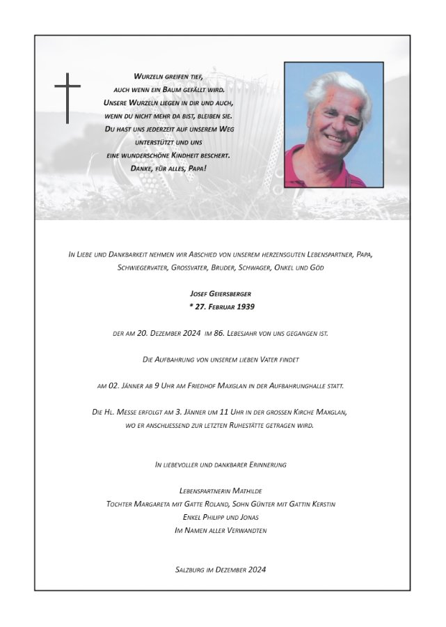 geboren am 27. Februar 1939 in St. Michael im Lungau gestorben am 20. Dezember 2024 in Salzburg