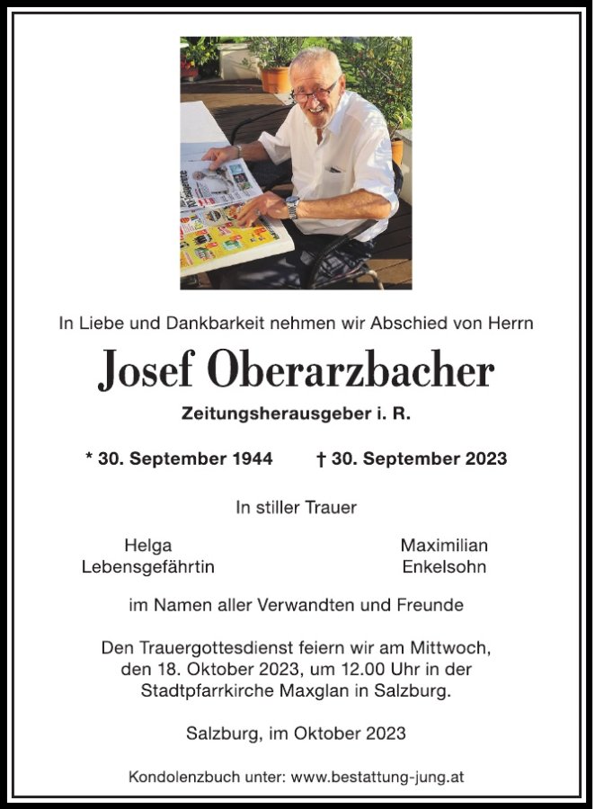 Wir ehemalige Nachbarn haben Josef Oberarzbacher als einen sehr freundlichen, arbeitsfreudigen und hilfsbereiten Menschen kennen- und schätzen gelernt. Sein handwerkliches Geschick und sein umfangreiches Wissen, verbunden mit Hausverstand, werden uns immer in guter Erinnerung bleiben.