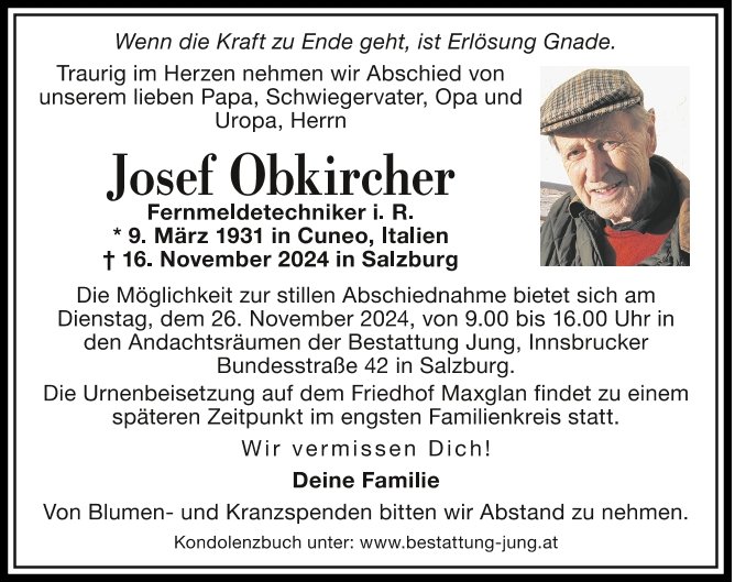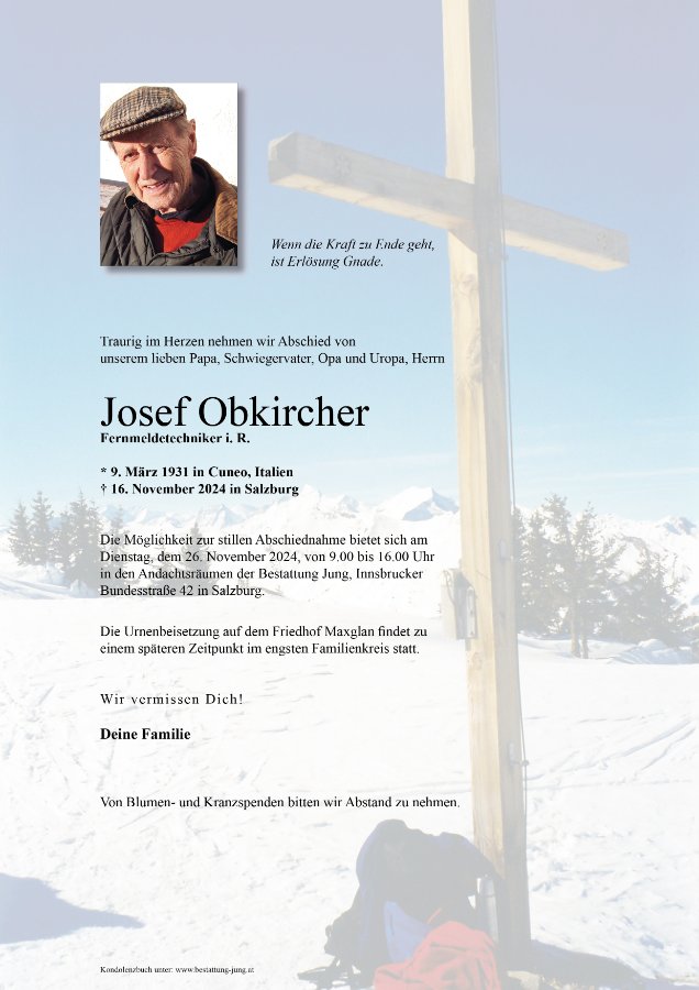 Lieber Sepp,vielen Dank für unsere stets ungetrübte gute Nachbarschaft durch die vielen Jahrzehnte hindurch und für deine liebe Freundschaft in allen diesen Jahren! Requiesce in pace!
